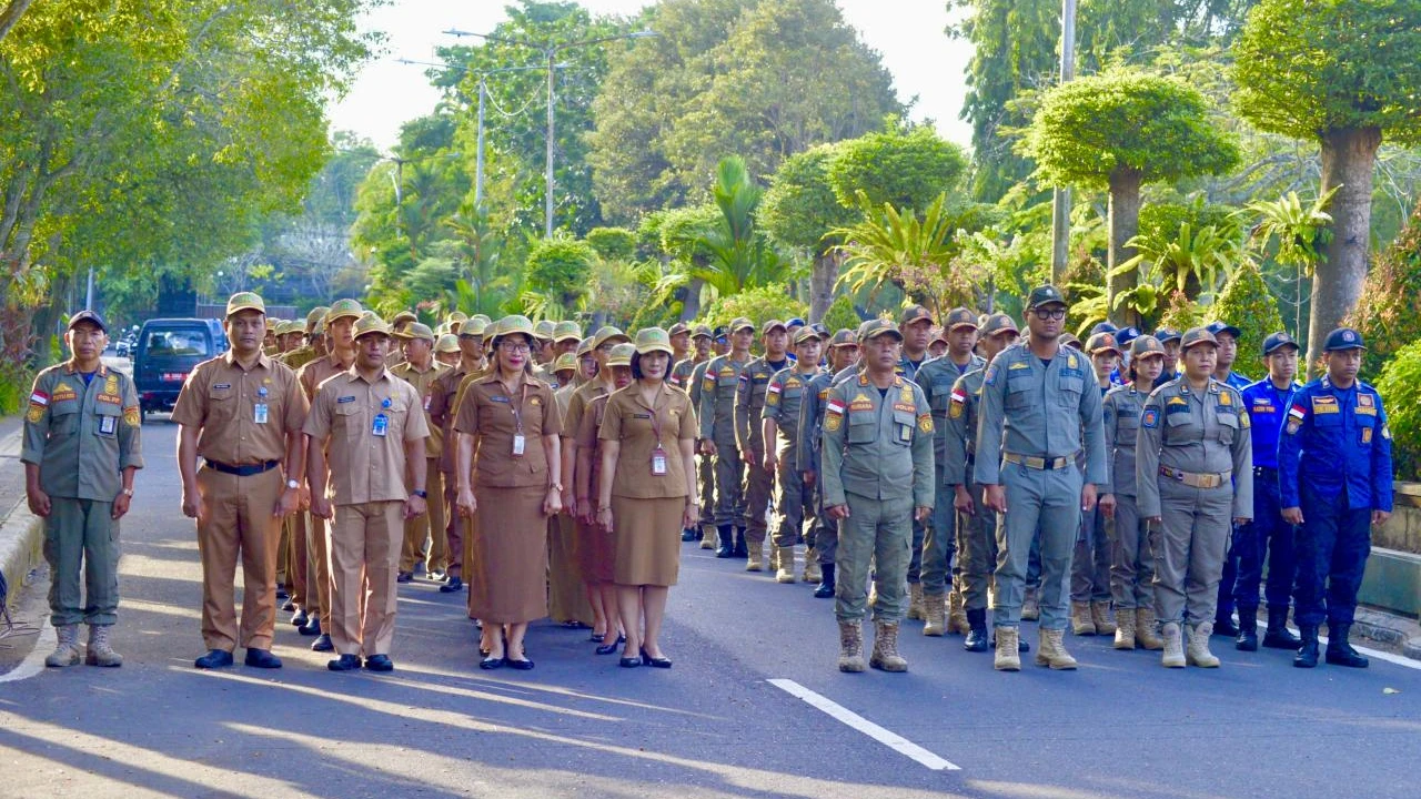 Jembrana – Mengawali pekan dengan semangat transformasi birokrasi, jajaran Pemerintah Kabupaten Jembrana melaksanakan apel koordinasi pada Senin, 20 April 2026, bertempat di halaman Kantor Bupati Jembrana. Bertindak sebagai pembina apel, Asisten Administrasi Umum (Asisten 3) Ni Nengah Wartini. Beliau menyampaikan sejumlah poin strategis terkait kebijakan efisiensi nasional dan penguatan internal yang melibatkan seluruh pimpinan Organisasi Perangkat Daerah (OPD) serta staf di lingkungan pemerintah daerah.